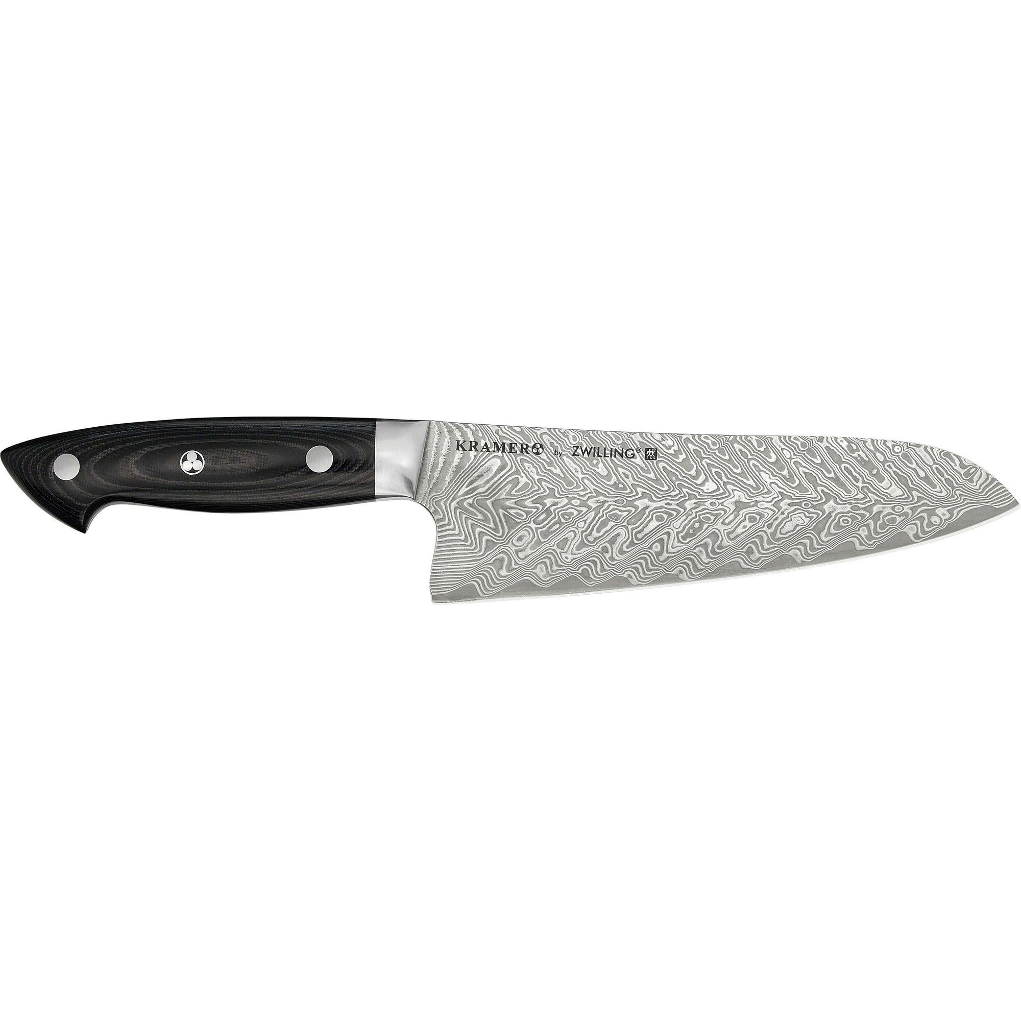 Vi har fundet Zwilling Bob Kramer Santokukniv fra Zwilling hos KitchenOne.dk i kategorien Madlavning Køkkenknive Santokuknive. Denne fremragende Bob Kramer santokukniv fra Zwilling er utrolig alsidig, da den både kan skære kød samt fisk og snitte grøntsager til perfektion. Det stabile skaft i Micarta er ergonomisk udformet, hvilket gør kniven til en fornøjelse at arbejde med. Ko